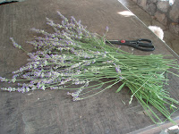 Keräsin pari kimppua laventeleita sisälle. Nyt niitä alkaa olla kaappien päällä ja jokaisessa maljakossa.